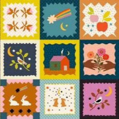 Mystic Fable by Alexia Marcelle Abegg evokes the dreamy charm of old-world storytelling. Inspired by antique appliqué quilts, traditional house blocks, and whimsical animal motifs from turn-of-the-century designs, the Ruby Star Society collection feels both nostalgic and imaginative. Quirky shapes and soft textures give each print a handmade, heirloom quality.
